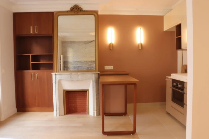 Avec ses moulures incroyables et ses cheminées à trumeau, cet appartement haussmannien a retrouvé son éclat après une rénovation totale pour laquelle calathea studio est intervenu de la conception au suivi de chantier.