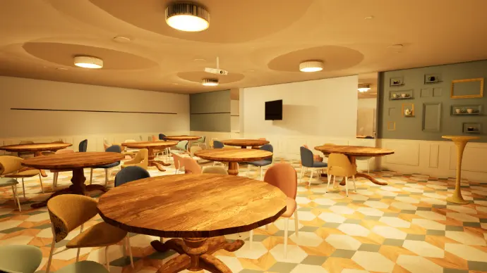 Contexte et objectifs : Transformer une salle de séminaires en amphithéâtre en un espace esprit world café. La nouvelle salle devra accueillir des séances plénière mais aussi des ateliers ou des repas.