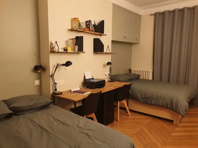Contexte et objectifs : Cet appartement haussmannien, resté dans son jus, devait accueillir confortablement une famille avec deux grands ados.