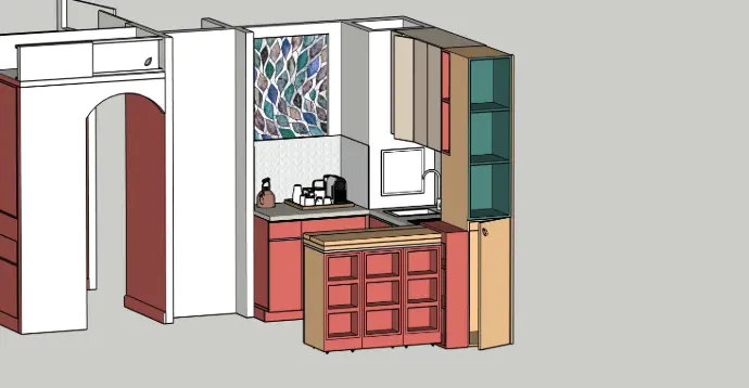 Comme souvent dans les longères d'île de France, l'entrée se fait directement par la cuisine. Découvrez dans ce projet comment cette grande cuisine devient pièce à vivre tout en accueillant un coin entrée.